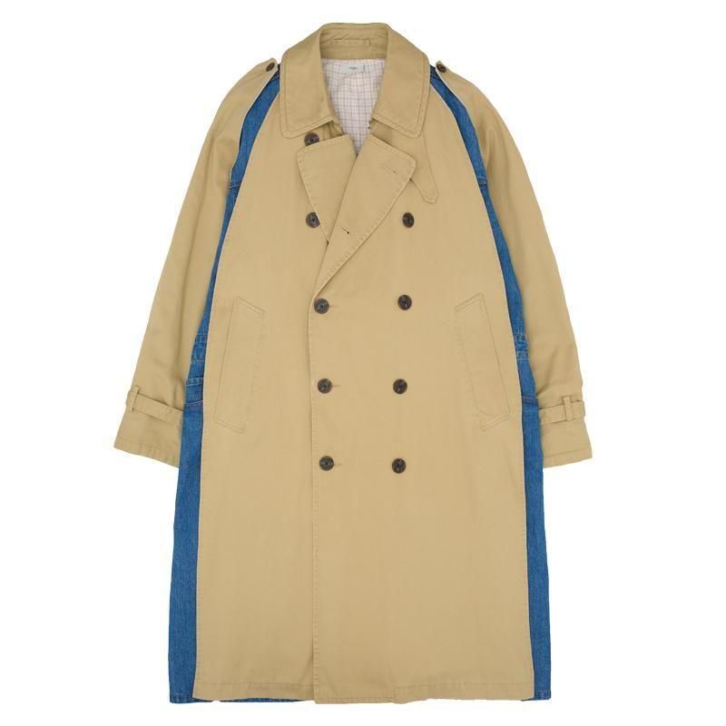 トレンチコートとデニムのセットアップが一体となったドッキングコート